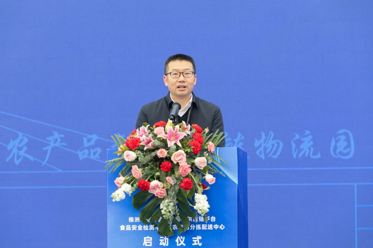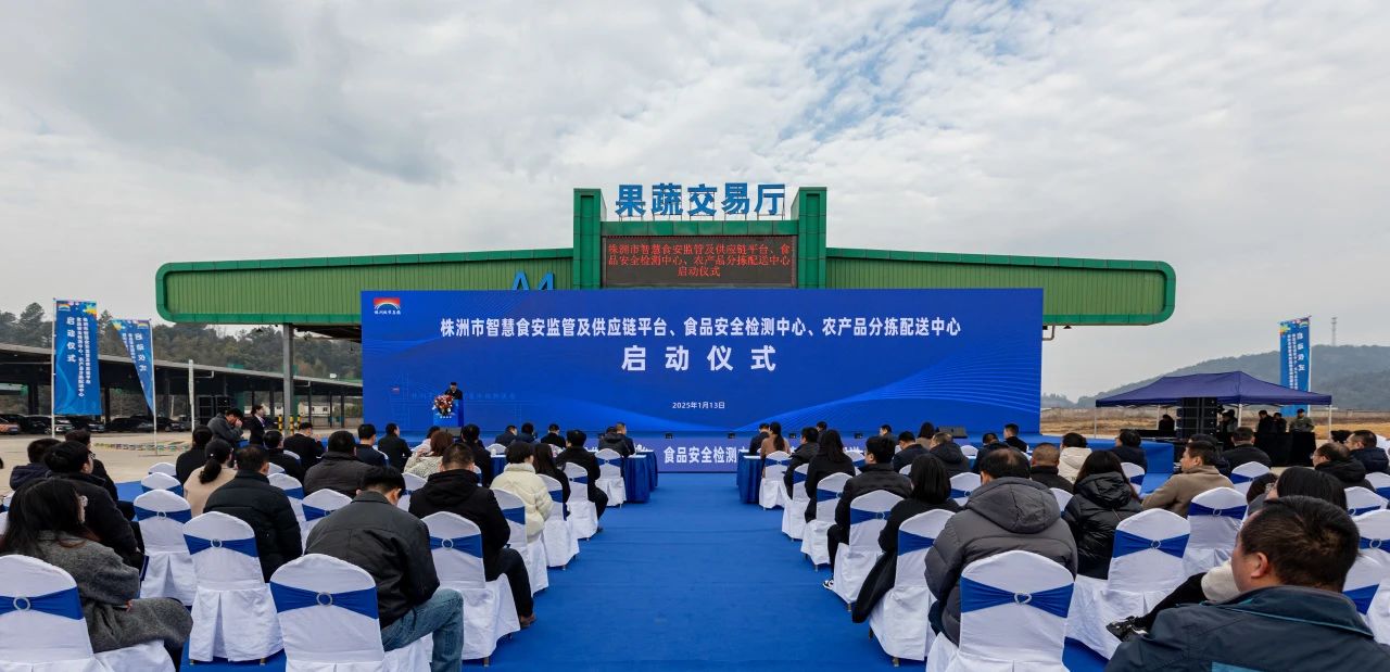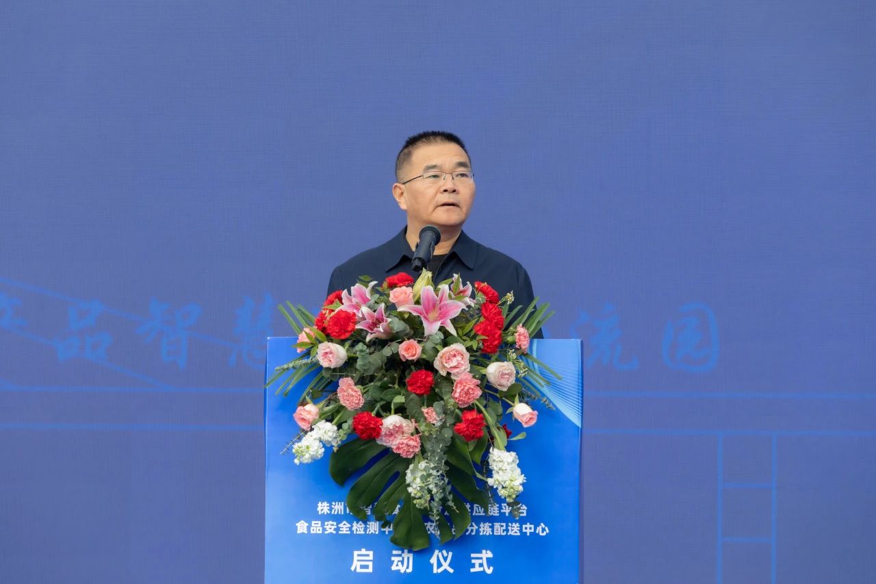 1月13日,株洲市智慧食安监管及供应链平台、食品检测中心、食材分拣配送中心(简称 “一平台、两中心”) 启动仪式在株洲市农产品智慧冷链物流园顺利举行。市人民政府副市长蒋湘晖宣布“一平台、两中心”正式启动,山东农业发展集团有限公司总经理智德学出席仪式并致辞,集团党委书记、董事长夏春良主持仪式。市市场监督管理局党组书记、局长谢志军;市公共资源交易中心党委书记肖立志;市教育局副局长龙超俊;荷塘区委副书记陈柏文;集团党委委员、副总经理,现代物流集团董事长张剑;市属高中学校代表、荷塘区中小学校代表、湖南宾喜乐农业科技公司、现代物流集团下属事业部等单位代表共计100余人参加仪式。